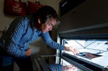 McPherson coloca un dispositivo Surface en una máquina que imita la luz ultravioleta.
