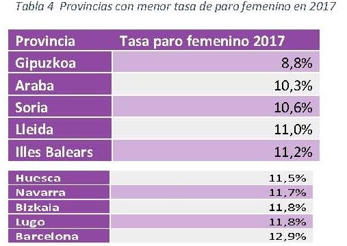 El paro femenino se redujo un 4,4 puntos entre 2015 y 2017