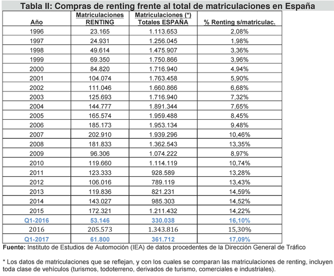La flota de renting crece un 9,57% Actualizado: