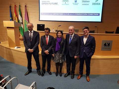 Durante la presentación, han participado el alcalde de Málaga, Francisco de la Torre; el Secretario General de Empresa, Innovación y Emprendimiento de la Junta de Andalucía, Manuel Ortigosa Brun; la consejera delegada de Telefónica España, María Jesús Almazor; Fernando Hardasmal, vicepresidente ejecutivo, División de Servicios ProductTesting, DEKRA SE; el responsable de tecnologías de comunicación & EMC de SEAT, César de Marco, y el director global de emprendimiento de Telefónica, Miguel Arias.