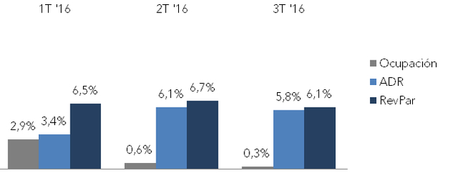 (9 meses de 2016: Datos de hoteles comparables + hoteles en reforma)