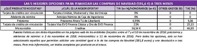 Kelisto.es ha analizado cuáles son las mejores alternativas para financiar los gastos navideños (591,6 euros de media[1]) en un plazo de tres meses y ha seleccionado las mejores ofertas: