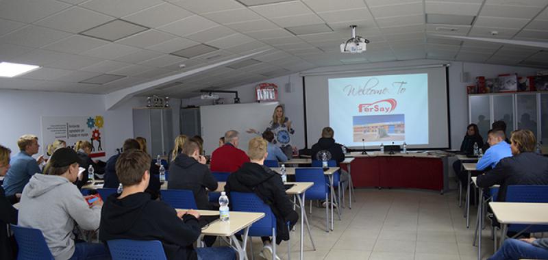 Lili Rosenova, máxima responsable del área internacional de Fersay, llevó a cabo una presentación previa de Fersay a los estudiantes daneses y les explicó el funcionamiento habitual de este departamento, así como la historia de la compañía que se remonta a 37 años.