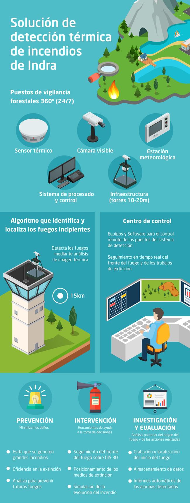 La compañía ha instalado seis puestos de vigilancia automática dotados con sensores térmicos capaces de medir con precisión la temperatura a distancias de hasta 20 kilómetros. Estas estaciones envían la información al centro de control. El sistema cuenta con un sofisticado algoritmo que le permite diferenciar pequeños incendios de falsas alarmas.