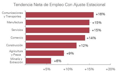Empleadores en los sectores Comunicaciones&Transportes, Manufactura y Servicios reportan las intenciones de contratación más optimistas para el 1Q 2016.