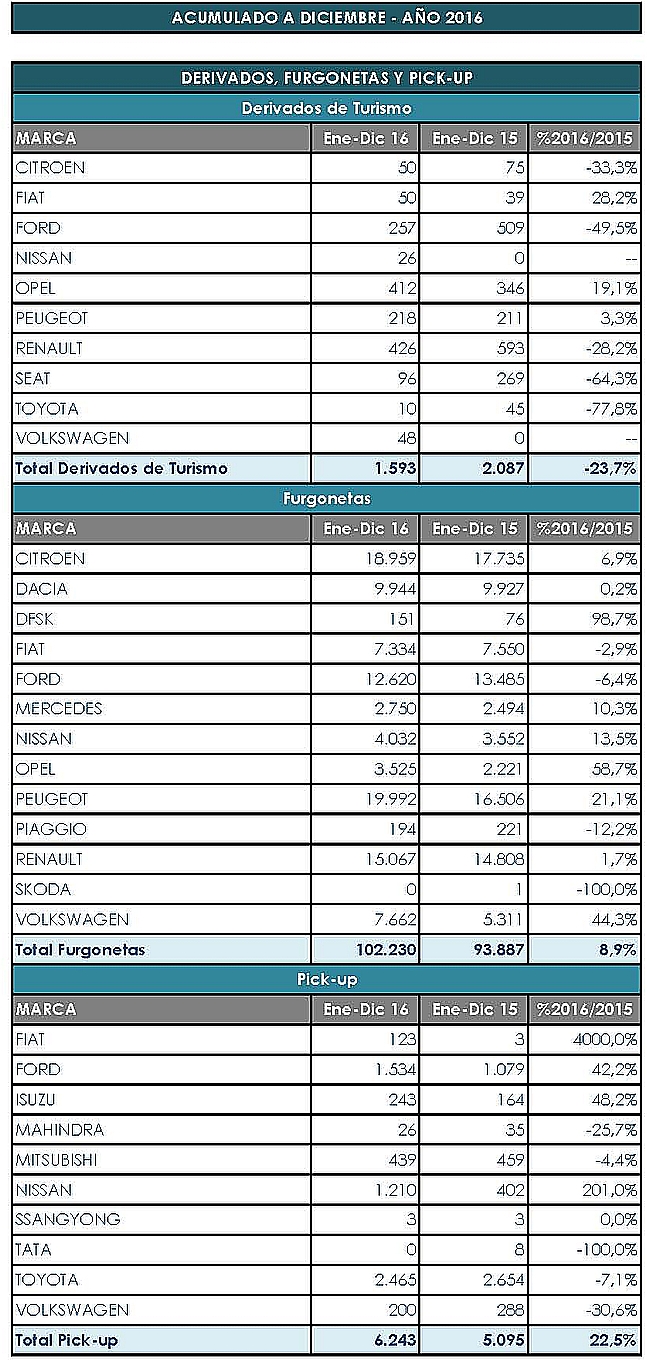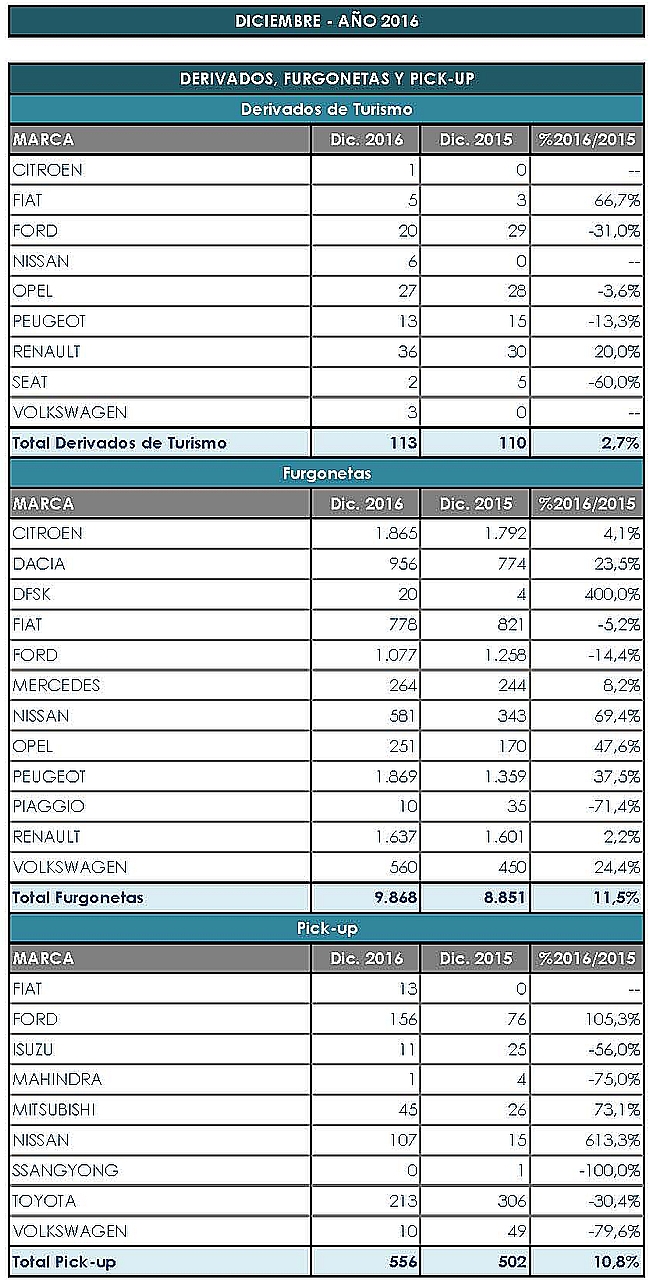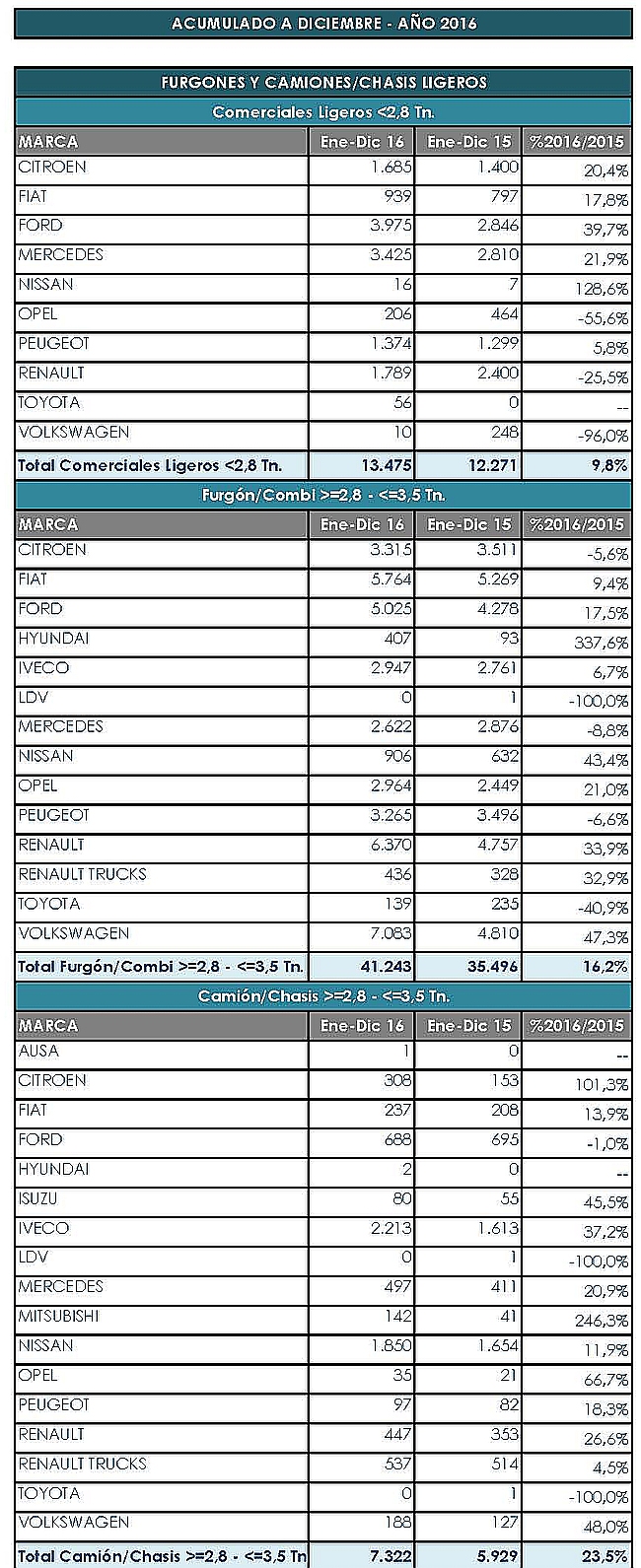 Las ventas de vehículos comerciales ligeros suben un 11,2% en el año 2016