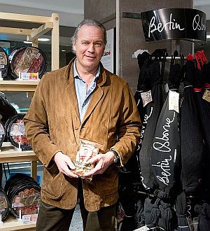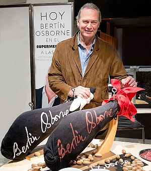 El artista charló y firmó algunos de sus productos a los clientes que allí se congregaron mientras degustaban Jamón ibérico, Lomo ibérco y picos de la marca BOS (Bertín Osborne Selección).