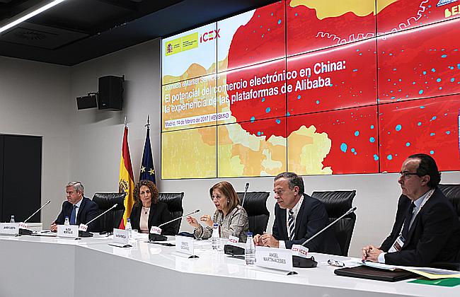 ICEX España Exportación e Inversiones ha organizado este martes una jornada para presentar las oportunidades que abre el canal del comercio electrónico para la internacionalización de las empresas españolas en China a través de las distintas plataformas de Alibaba. Esta jornada ha sido inaugurada por la secretaría de Estado de Comercio y presidenta de ICEX, María Luisa Poncela, por el director de Alibaba Group para España y Portugal, Ernesto Caccavale, y por el presidente de Correos, Javier Cuesta.