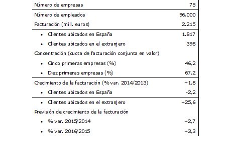 La actividad sectorial se vio impulsada por el notable dinamismo de la demanda extranjera. Los ingresos por prestación de servicios a clientes ubicados en el extranjero aumentaron un 25,6% en 2014, aproximándose a los 400 millones de euros, lo que permitió compensar el descenso del 2,2% que todavía se produjo en la facturación a clientes españoles.