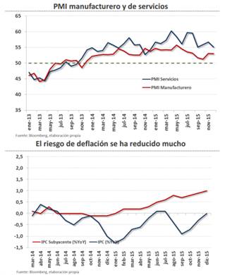 - El hecho de que la política fiscal se vaya a volver expansiva en 2016 también es un factor significativo que debería ayudar al sostenimiento de la actividad.