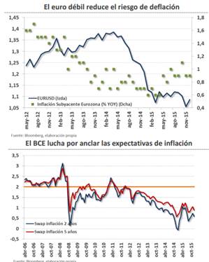 - Así las cosas, no esperamos durante 2016 medidas expansivas adicionales por parte del BCE. Esta circunstancia podría ayudar a sostener la cotización del euro.