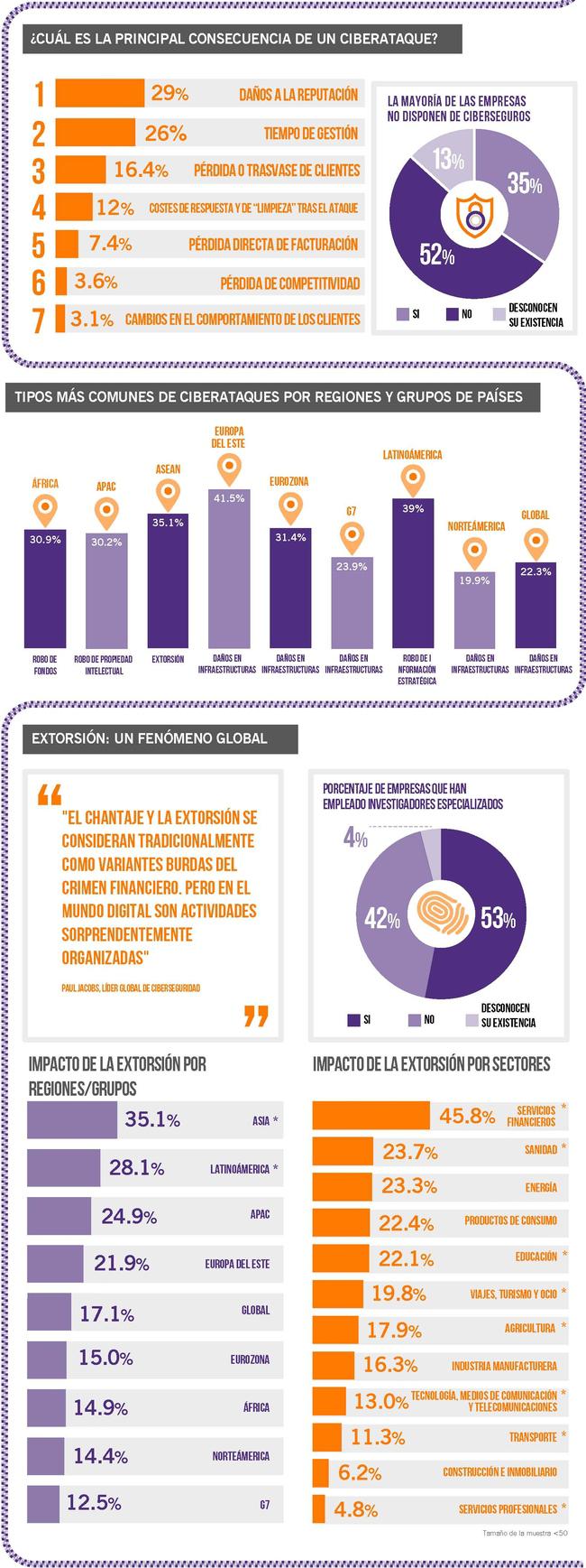 La encuesta, realizada entre 2.500 directivos empresariales en 36 economías de todo el mundo, muestra un aumento generalizado de las amenazas a la ciberseguridad, con un porcentaje global de empresas afectadas que se sitúa en el 21% frente al 15% del año pasado. La Unión Europea es la región donde el cibercrimen está más generalizado con un 32% de compañías atacadas recientemente. Le siguen África (29%) y Norteamérica (24%).
