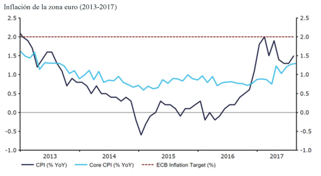Las condiciones económicas de la zona euro parecen indicar la necesidad de debatir políticas más estrictas. La economía de la eurozona se expandió en el segundo trimestre al ritmo anual más rápido desde 2011. El desempleo se mantuvo sin cambios en julio y ahora se encuentra en su nivel más bajo desde febrero de 2009, el cual debería seguir este camino para fomentar un crecimiento más fuerte. La inflación subió inesperadamente a 1,5% interanual en agosto desde el 1,3%, su nivel más alto desde abril. La medida básica, la cual excluye los componentes volátiles de alimentos no procesados y energía, muy controlada por el BCE, se mantuvo sin cambios nuevamente en el 1,2%.