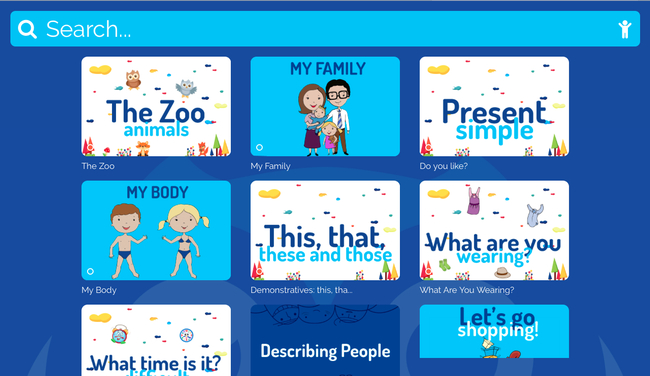 Cada vez que el alumno entra en la aplicación, esta ofrece un panel explicativo con el proceso de aprendizaje según las actividades realizadas y las puntuaciones obtenidas con anterioridad. Con un sistema fácil e intuitivo, se accede a un buscador de actividades que permite a los alumnos trabajar en una infinidad de temas, desde el aprendizaje de los colores hasta actividades gramaticales más complejas, siempre ajustados a la edad y los distintos niveles.