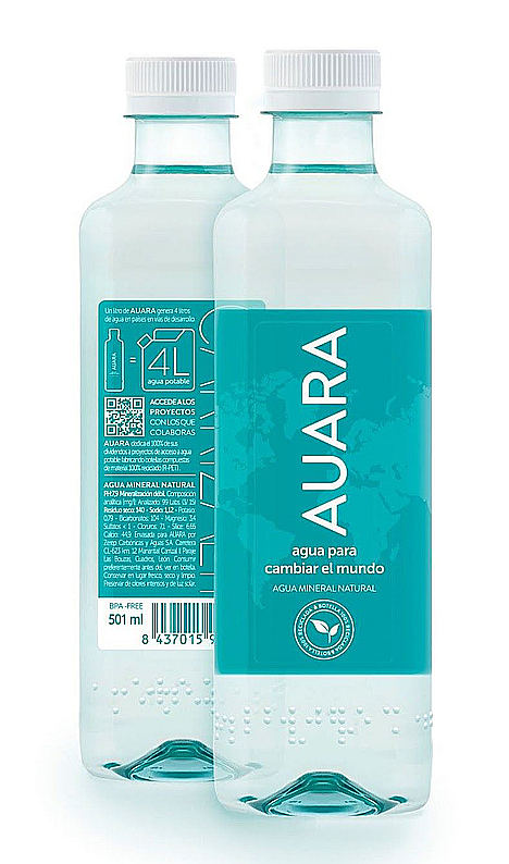 La nueva etiqueta mantiene su color corporativo y su lema, ‘Agua para cambiar el mundo’, sobre una imagen del mapamundi que recuerda la importancia de velar por la conservación y el acceso a este recurso en todo el planeta. Asimismo, como novedad se incorpora el sello que garantiza que todas las botellas de AUARA han sido fabricadas con plástico RPET 100% reciclado, 100% reciclable, con lo que la empresa social también reduce el impacto medioambiental de las botellas.
