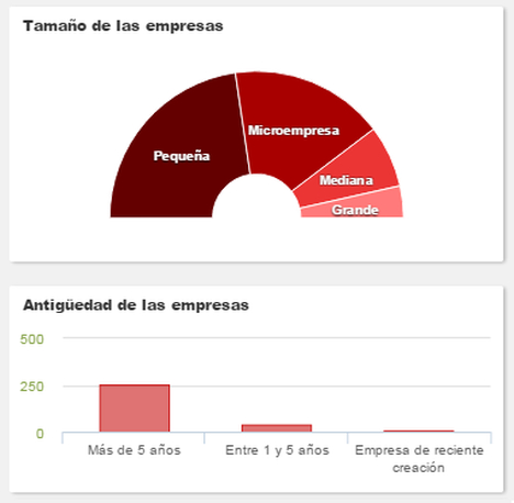 El análisis agregado que permite esta herramienta arroja datos muy relevantes sobre su concentración. El 34% son microempresas, el 45% pequeñas empresas, el 14% medianas y un relevante 7% ha alcanzado la dimensión de gran empresa.
