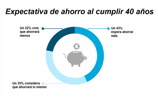 La otra mitad, no tiene tan buenas expectativas de mejorar su capacidad de ahorro cuando cumpla los 40. Un 35% cree que ahorrará lo mismo y un 22% considera que ahorrará menos.